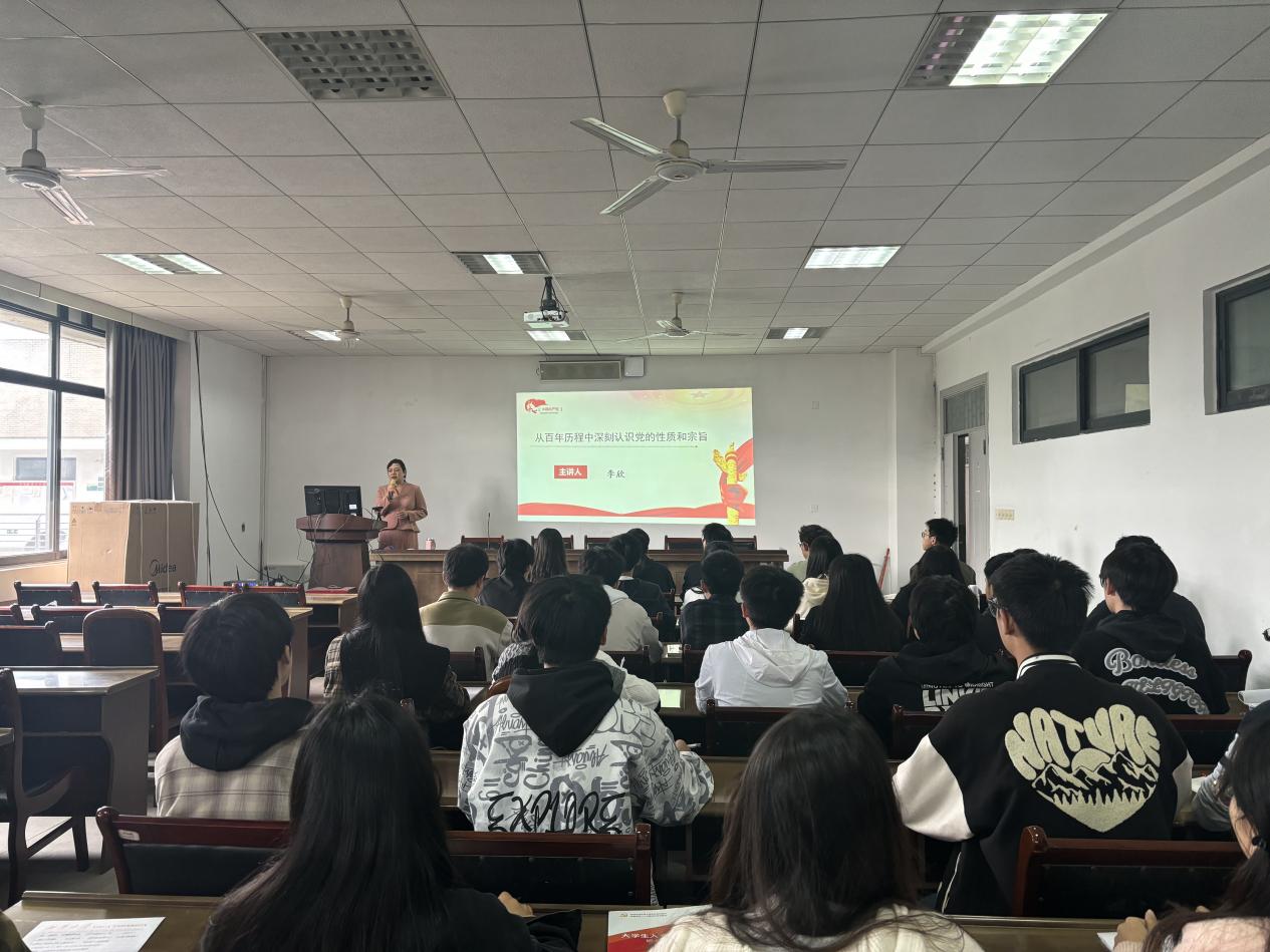 紧接着,李书记为同学们详细介绍了本次课堂教学的四个部分。一是党的初心和使命是为中国人民谋幸福,为中华民族谋复兴。二是党的四个伟大成就,即新民主主义革命、社会主义革命和建设、改革开放和社会主义现代化建设和新时代中国特色社会主义这4个历史时期的伟大成就。三是党的四个伟大飞跃,这四个飞跃使党迎来了从“站起来”到“富起来”,从“富起来”再到“强起来”的历史新华章。四是党的历史经验给我们的启示,就是要深入学习和贯彻“十个坚持”,要深刻认识党的性质和宗旨,以史为鉴,开创更加灿烂的未来。