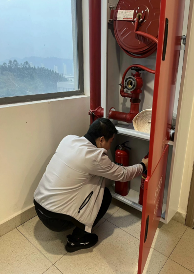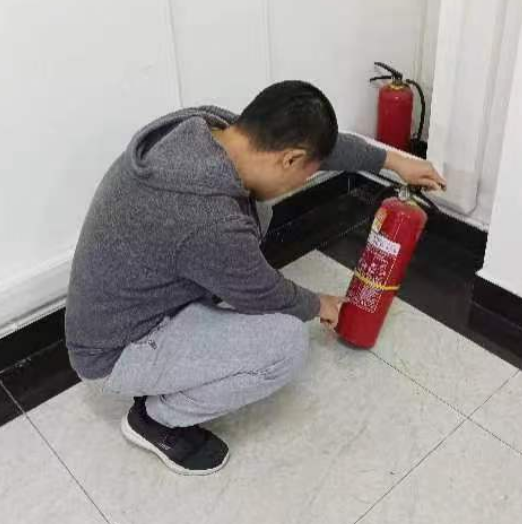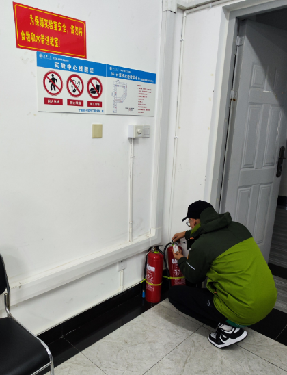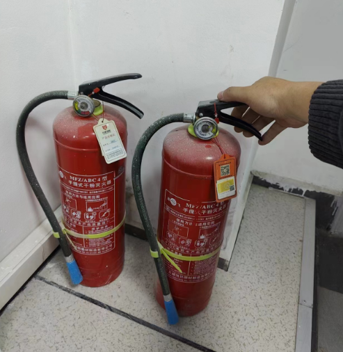 实验中心老师对自己分管教室内的消防灭火器情况进行了检查,确保在有效期内和正常压力范围内。