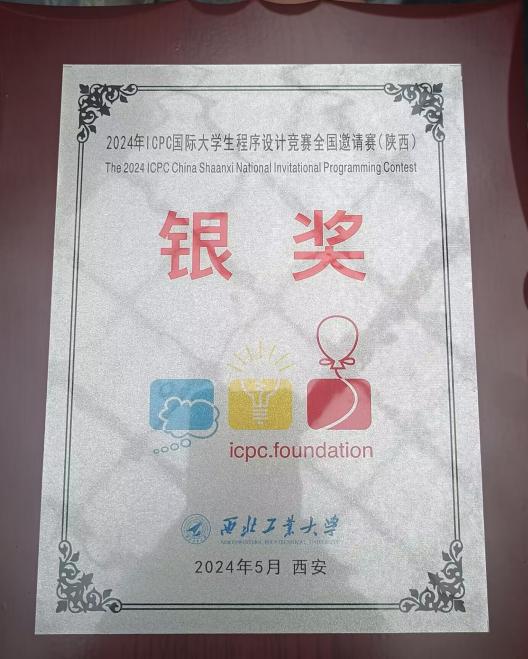 2024年ICPC国际大学生程序设计竞赛全国邀请赛(西安)银奖