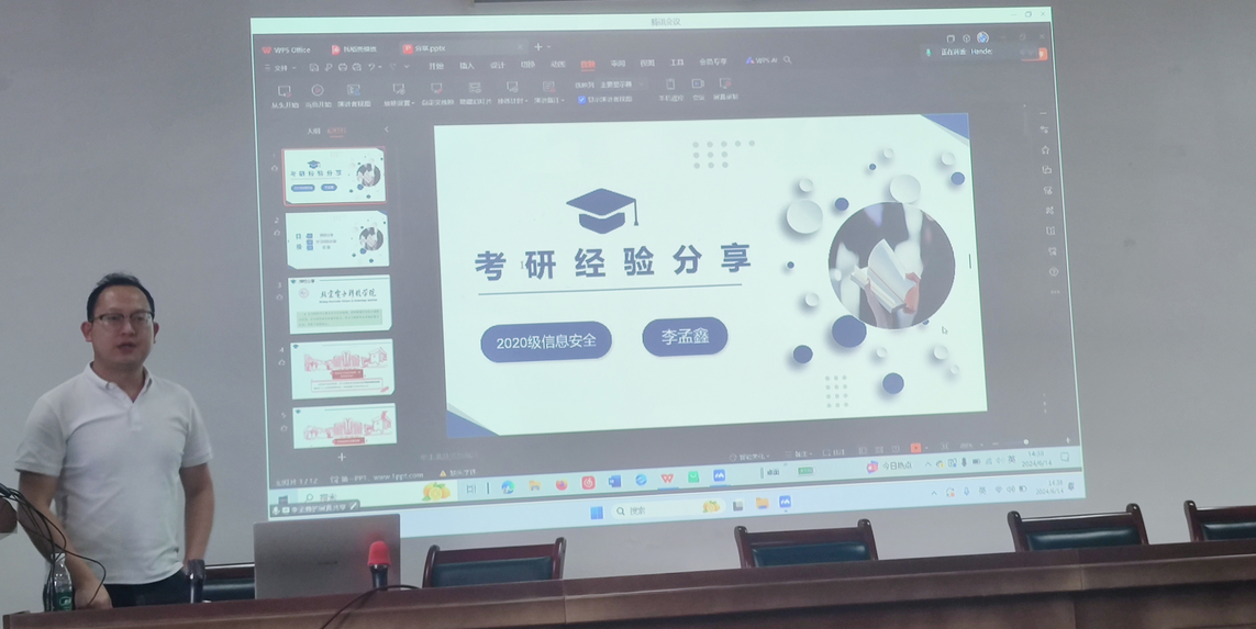 在考研板块,成功考取北京电子科技学院研究生的2020级信息安全同学李孟鑫通过线上会议的形式,为同学们分享了自己的考研经历,包括择校、专业选择以及备考期间的学习方法。李孟鑫寄语学弟学妹“耐得住寂寞,才守得住繁华,熬得住孤独,方能等到花开。”为准备考研的同学们加油鼓劲。
