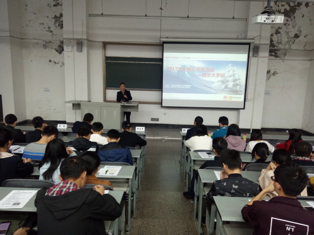 华为成都代表处产品总监、高级工程师叶华向与会人员介绍了华为公司,并对华为人才需求做了分享。