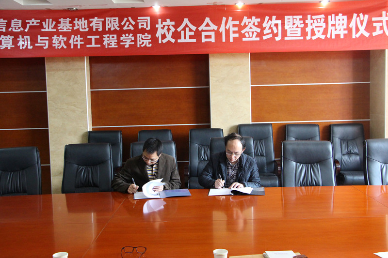 3月25日,在成都国信安信息产业基地,计算机与软件工程学院与国信安产业基地签署校企联合培养协议。学院党委副书记、副院长毕达平,学院副院长杜亚军,学工办主任刘凤丽,学院团委副书记李贵春以及国信安产业基地特聘教授赵定远,项目经理陈敏,总经理助理杨宇参与了协议签订仪式。