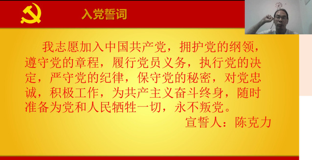 此次活动采用线上方式,活动主旨包括重温入党誓词和畅谈入党的心路历程。大家在不同的地方不同的场景下共同参与完成了此次活动,各位党员同志都严肃地重温了入党誓词,并敞开心扉地谈了自己的认识感想。
