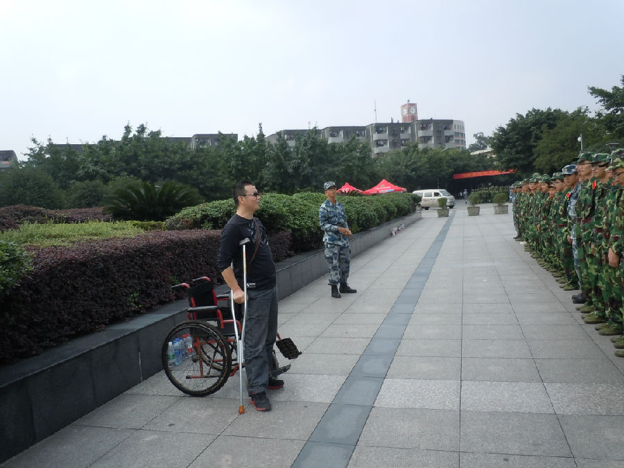 D2: 腿伤仍坚持站立和学生谈话的辅导员