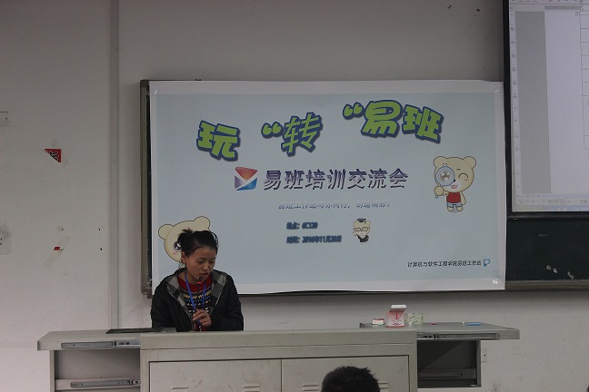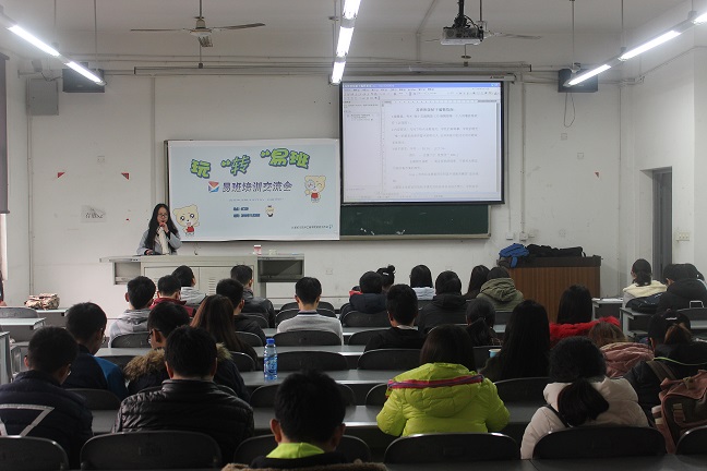 培训开始前,易班副站长何珊播放了一段关于如何使用易班的视频,使同学们对易班的使用有了一个初步的认识和了解。随后,钟舒煜对如何使用易班进行了更进一步的介绍和讲解。首先,她对如何注册易班账号、如何获得和使用易班网薪等问题进行了讲解。紧接着,她着重讲解了如何使用易班发帖,并对发帖使用的编辑器秀米、帖子的内容和字体、图片的大小以及颜色的搭配等提出了一系列要求。她还鼓励同学们多在易班发帖,争取让自己的帖子出现在易班首页。在易班发帖培训之后,易班站长阮庆对各班易班班长提出了有关易班考核的要求,考核内容主要为日常的易班签到,发布精品贴以及参加易班会议等,阮庆站长还提出了具体的考核标准,使每位易班班长能够更加清楚明白的去完成自己的任务。