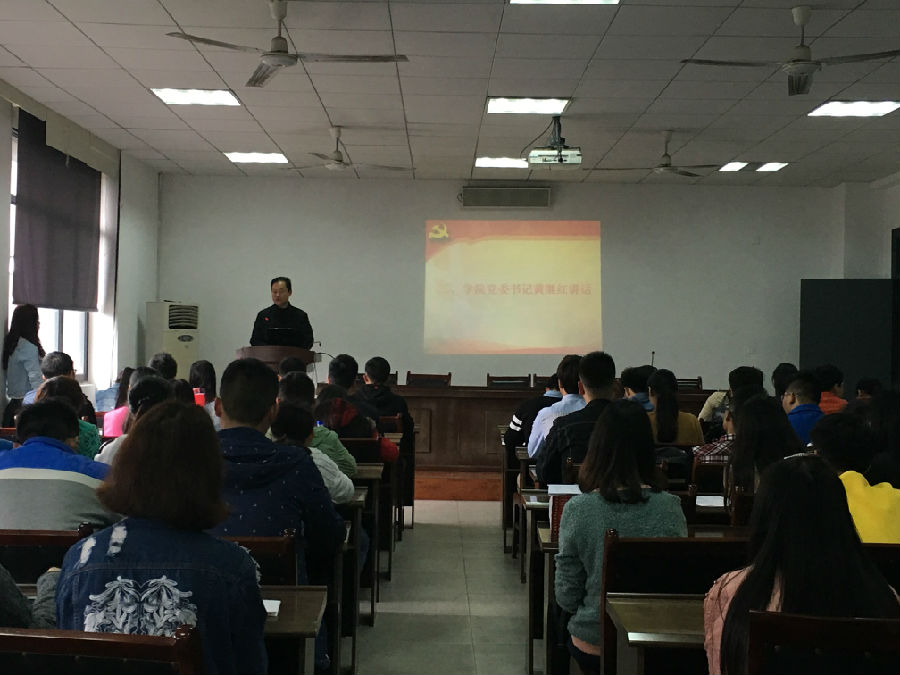 首先,学院党委书记黄继红讲话,他传达了学院领导对党校工作的重视,他希望每一个学员都能通过自己的认真努力顺利结业并取得优异的成绩,党校的学习可以让学员学习党的相关知识,进而端正入党动机,坚定入党决心。