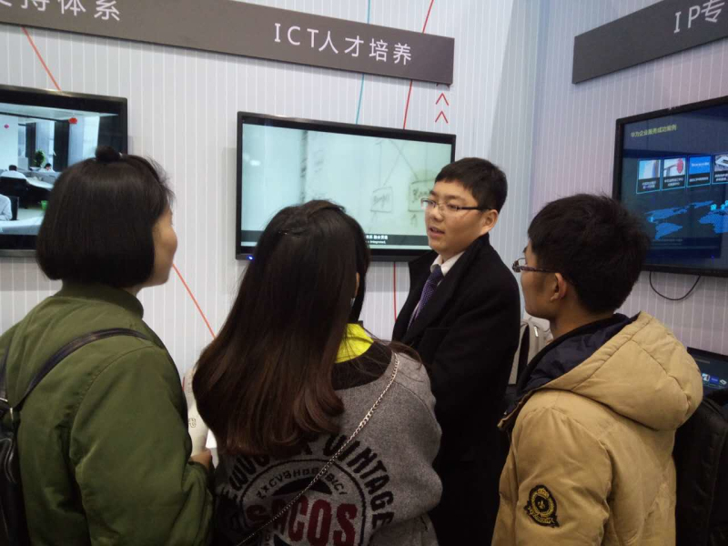 此次展示会对学生开放了产品、行业、方案、创新四大区域。其中产品展示区展示了融合存储、双活数据中心、模块化数据中心、32路关键业务服务器、RP多功能智真、全高清视频会议录播服务器、CE12800、S12712园区网核心交换机、原子路由器、可视电话等五大类企业级高端产品,同时还为同学们展示电子政务、医疗、教育、公共安全、金融、互联网、烟草、电力等八大行业信息化解决方案。信息技术正在颠覆大家的生活,云计算、移动互联网、大数据、物联网正在酝酿着第四次工业革命,一个迅猛变化的世界扑面而来。