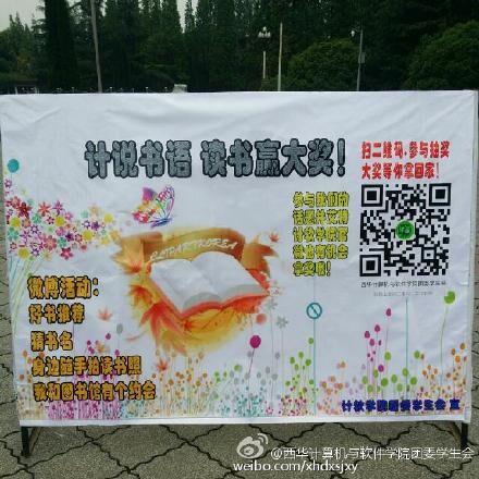 为了传达读书精神,弘扬读书美德,计算机与软件工程学院在四月“读书月”期间在学院官方微博上进行了微博读书月活动,活动由学院星愿报社策划开展,分为线上为期一个月的微博读书月活动和线下摆点宣传活动。