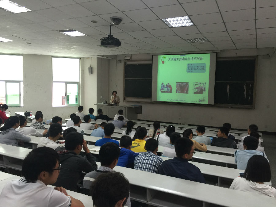 苏文明讲座的主题是“阳光心态,幸福生活”,讲座中他首先以“你幸福吗?”这个话题开始,采用互动的方式测量了同学们的幸福指数,激发了同学们的听课兴趣。苏老师从学习进修、职业发展、人际交往等9个方面与同学们分享了大学期间如何幸福成长,如何为未来的幸福生活累积更多资本,激励同学们首先成为一个合格的大学生,再发展为一个优秀的大学生,再成长为一个卓越的大学生。姚群老师主讲的内容是:大学生常见心理困惑及其应对方式。她结合自己所学的心理学相关知识和从事多年的辅导员工作经历,从学习、生活、人际交往、生涯规划四个方面分析新生常见的心理困扰,并提出相应的建议,引导新生树立积极心态。