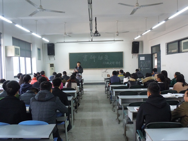 随后,宋老师与同学们分享考研经验,他从分析考研学生心理状态开始,提示学生在报考专业时要考虑主流方向(大数据、第三代互联网),同时以幽默风趣的语言分享考研复习方式、方法;分析报考各大高校研究生所需要的条件;提出考研需要形成好的氛围,需要相互交流帮助,这样成绩才能更上一层楼。