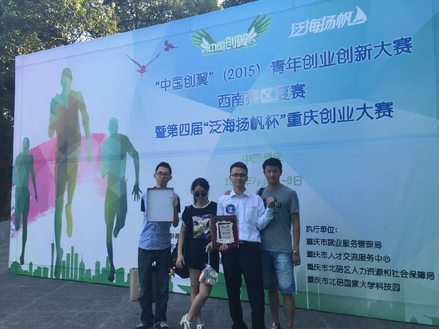 7月6日至8日,由人力资源和社会保障部、中国西部人才开发基金会指导,中共重庆市委组织部、西南大学等联合主办的“中国创翼”(2015)青年创业创新大赛西南赛区复赛在重庆西南大学隆重举行,我校学子喜获“银翼奖”。