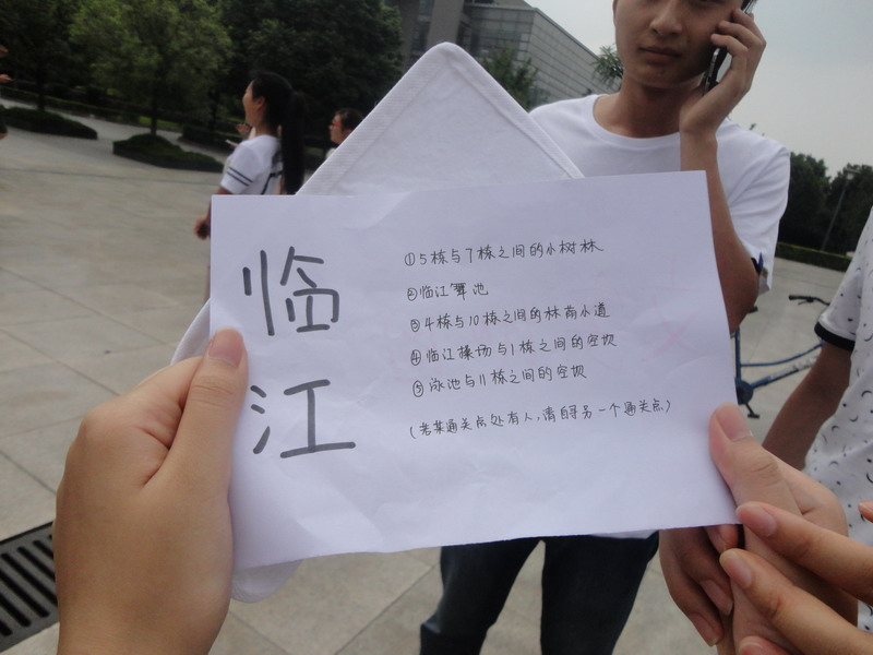 本次定向越野赛的选手由计算机与软件工程学院及理学院团委学生会、各班级代表队共12支队伍组成。活动在友谊第一,比赛第二的活动理念下迅速开展。每支队伍分派两名选手前往五教大楼寻找越野地图,率先找到地图的队伍收好地图便迅速前往下一个任务点。每个任务点的工作人员静静地等待选手们的到来,每个队伍需要面临的考验不尽相同,有的是要一口气喝完“黑暗料理”,有的是挑战队伍的默契度,摆出不同难度的pose拍照。还有的考验选手的智慧,在较短时间内地面上只能留下与工作人员说出的数字对应的脚的数目,俗话说“你有张良计,我有过桥梯”,选手们的聪明才智不容小觑,直接坐在了地上,抬起脚,轻松应对。其他的队伍也是一路顺风顺水,最后,8个队伍成功集齐5张通关卡并率先返回到卓越广场,顺利晋级下一轮。