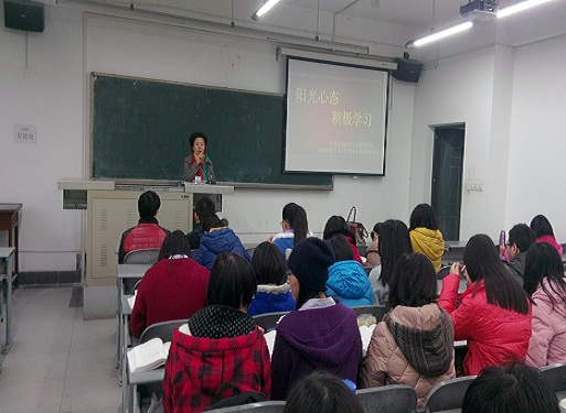 2014年12月9日上午,数学与计算机学院数学与应用数学专业2013级全体学生在6c-414开展关于“阳光心态,积极学习”心理健康特色与专业结合主题活动。