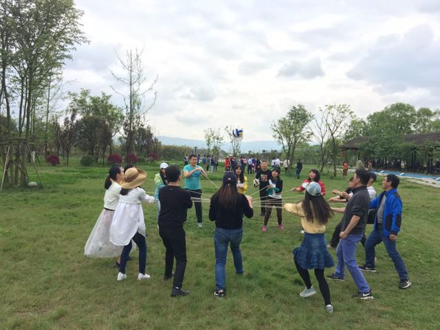 灾后的小鱼洞镇村民们得到了政府大力救助和扶持,整个村镇旧貌换新颜,白墙青瓦掩映在碧树红花的春色里,一座座小楼,让人看到新农村的勃勃生机……在鱼凫湿地公园里,全院教职工展开了别开生面的集体活动,“趣味投篮”让学院的十几名神射手脱颖而出,投球的、捡球的、助威的忙的不亦乐乎;在“毛毛虫比赛”中,各组队员在“左、右、左……”口号带领下,一只只“毛毛虫”可爱又笨重地向着终点跑去,平时工作中严谨又严肃的同事展现了活泼、俏皮的一面,让观众们捧腹大笑,欢笑、欢呼声震天;最难的是“鼓动人心”,需要一人将球放到比赛用的大鼓上,其余的16人用绳索操纵大鼓颠球,三分钟内颠球数量最多的队伍获胜,这场比赛考验的是各组队员的耐心、默契,在各组队员的团结协作下,颠球记录也屡创新高。