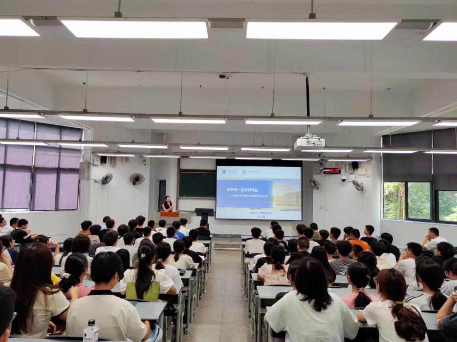 随后,李艳丽副主任详细讲解了计算机科学与技术专业的历史沿革、师资力量、教学设施及科研成果等基本情况,计算机科学与技术专业的核心课程体系、实践教学环节及未来职业规划等内容。她鼓励新生们要珍惜大学时光,合理规划学习路径,积极参与科研项目和实践活动,不断提升自我。