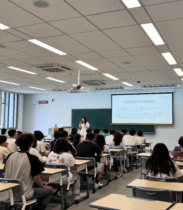 讲座特邀了洋光小语种的多位业内资深专家作为主讲嘉宾,分别是汪子健老师、李丹阳老师、杜艺莹老师。主讲人从共建一带一路的倡议出发,强调了小语种学习在国际交流中的重要性,特别是法语等在全球范围内具有广泛影响力的语言。主讲人指出,掌握一门小语种不仅能为个人学术成长提供广阔舞台,还能在商业、文化、教育等多个领域开拓更广阔的发展空间。
