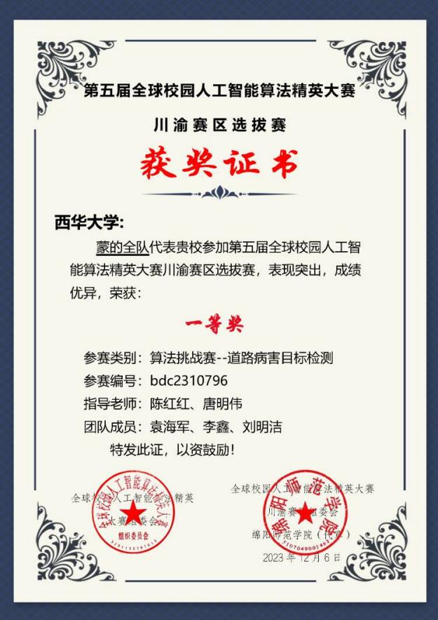 近日,从“2023年第五届全球校园人工智能算法精英大赛”传来捷报,bw西汉姆联6支参赛队伍在算法创新赛和算法挑战赛两个赛项中斩获佳绩。其中来自计算机与软件工程学院的5支队伍获全国二等奖2项,三等奖1项,省级一等奖1项,三等奖1项。