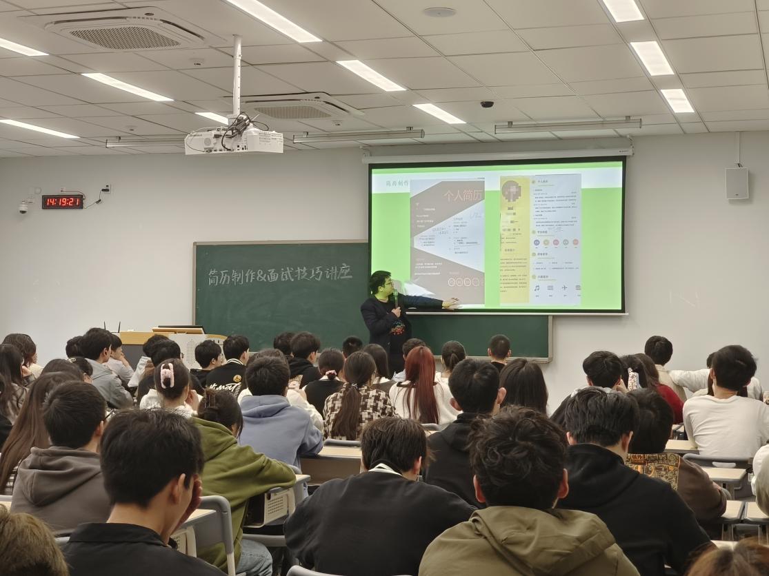 鲁经理从简历制作、简历投递、面试前准备、面试问题分析四个方面开展讲解,经过知识讲座和抢答互动,同学们学习到许多关于简历制作与面试的技巧。