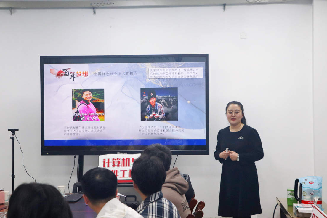 在讲座过程中,韩静老师聚焦于毕业生就业问题展开叙述,她强调了校招的重要性,鼓励同学们学会抓住机遇,勇敢地去展现自己,绽放属于自己的精彩。“时代的接力棒已传递到青年一代手中,作为新时代的大学生应该怎么做?”针对这一问题,韩静老师用“时代楷模黄文秀”和“卫国戍边战士”的英雄事迹,鼓励同学们要深入基层,到祖国需要的地方去,将自己的所学所想转化为实践动力。韩静老师激昂的声音回荡在整间教室,同学们也纷纷站起来发表了自己的意见,师生互动让班会生动了不少。