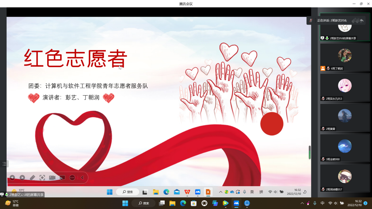 11月5日下午16:30,bw西汉姆联郫都校区计算机与软件工程学院青年志愿者服务队于线上召开“弘扬志愿精神,传递人间温暖”志愿者培训会议。本次学院志愿者培训会议旨在推动学院郫都校区志愿者发展,本次会议由学院青年志愿者服务队干事主持,计算机学院2022级2班学生参与了此次会议。