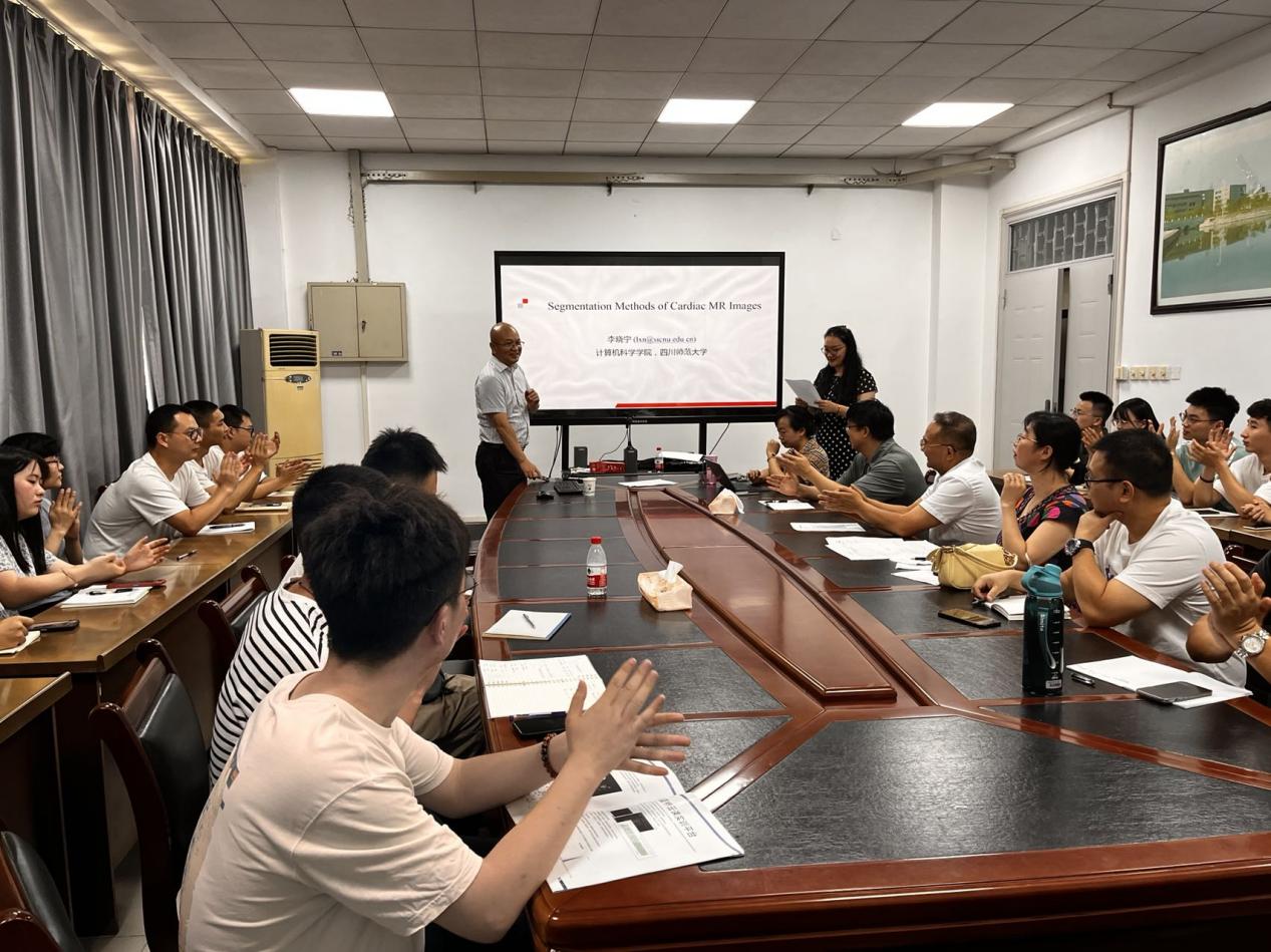 讲座中,李晓宁教授首先介绍了心脏磁共振图像分割技术的进展以及图像分割技术的难点,随后讲述注意力机制在心脏磁共振图像分割中的的应用,通过利用心脏内在结构和形状,提高图像分割精度。李晓宁教授严谨的论证、渊博的知识都给计算机学院师生留下了深刻的印象。