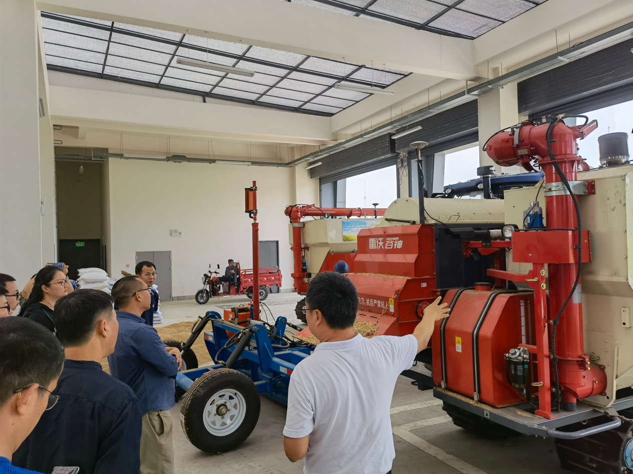 大邑“五良”融合无人农场是由bw西汉姆联现代农业装备研究院牵头实施,罗锡文院士团队提供技术支持下建设的四川省首个无人农场。现代农业装备研究院王霜院长热情地向学院教师们介绍了“五良”无人农场的基本情况,详细介绍了无人驾驶的收割机、平地机、旋耕机、播种机等各种新型农业机械设备。
