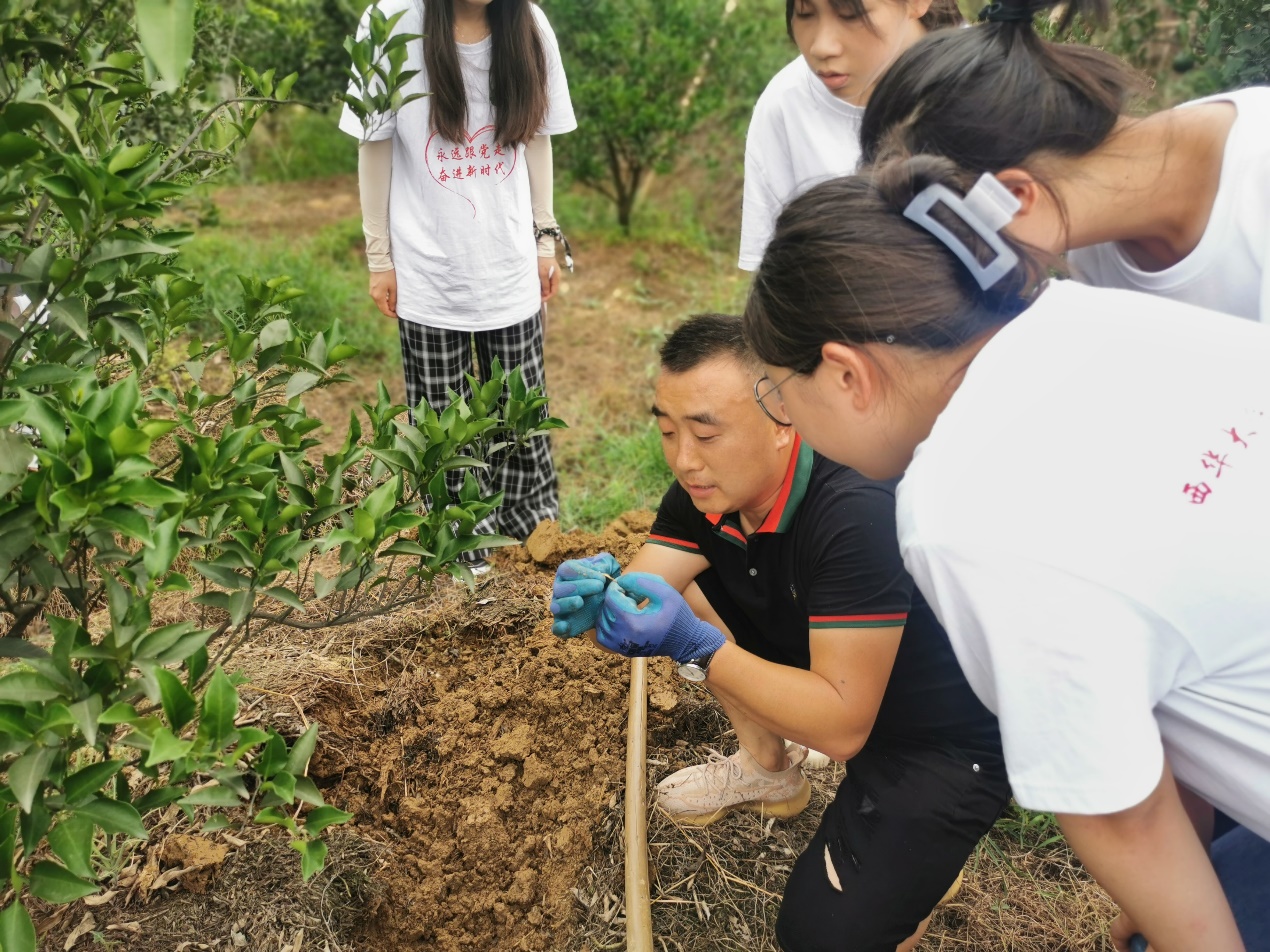 上午时分,小分队出发去拜访当地果农,学习肥料使用的相关知识。果农介绍到,为柑橘树幼树和成株施加的复合肥各有不同,幼树使用高氮型复合肥;成株柑橘树在膨大期施加高钾型复合肥,性价比高,且使用埋施的方式,最能保证效果。