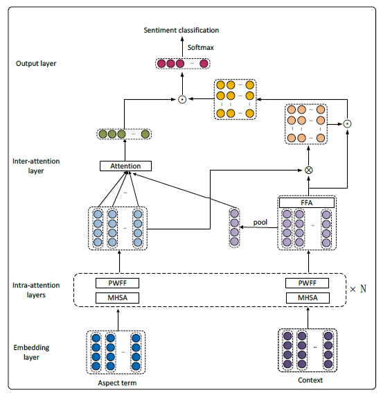 该文提出了一种新型的多注意力机制相结合的方面级情感分析算法。该算法在初始化词向量的时候采用了提高的BERT。然后提出了层内注意力机制和层间注意力机制两种不同类型的注意力机制。层内注意力机制是一个堆叠式结构,由多头自注意力机制以及点式前馈神经网络两部分构成。层间注意力机制使用一个交互式全局注意力结构。在此基础上,该文提出了一个特征关注机制模块帮助模型捕捉上下文信息。在常用的五个数据集上,实验结果表明提出模型优于同类的情感分析模型。该文具有重要的学术价值与应用前景。