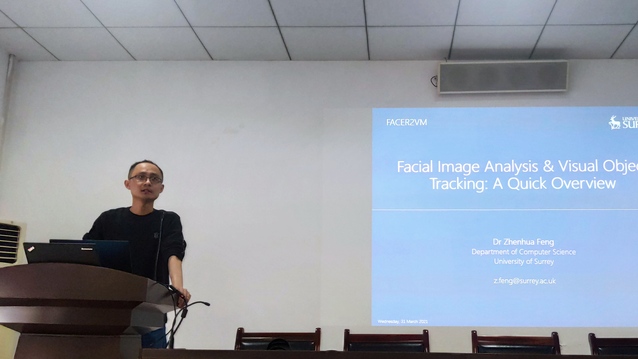 冯振华教授从“人脸图像识别、理解和分析”展开讲述,介绍机器学习算法,如级联回归和深度学习等,在人脸图像识别和分析各个领域中的近期研究成果及应用,其中包括人脸特征点定位、人脸三维重建、人脸识别和人脸图像生成等。