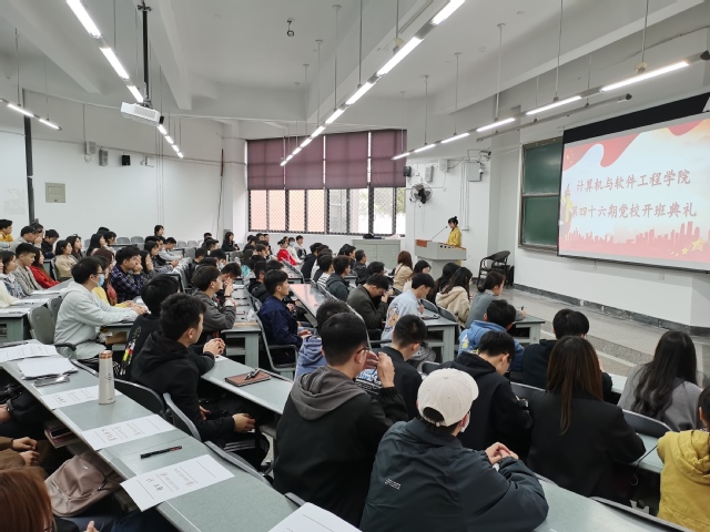 3月25日中午12:20,计算机与软件工程学院在6B102组织召开党校第四十六期入党积极分子培训班开班仪式。参加本次开班仪式的有学院党委副书记毕达平,学生党总支书记刘凤丽、党总支委员、各年级辅导员(班主任),以及第46期党校全体学员,开班仪式由党校副班长刘倩同学主持。