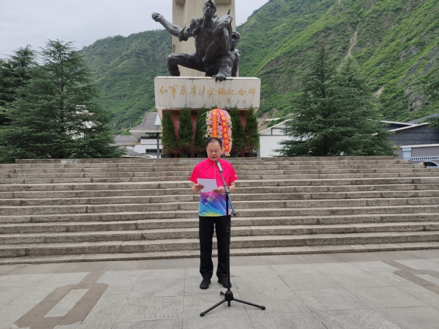 7月6日下午,全体党员和教职工在飞夺泸定桥纪念馆广场开展献花篮、重温入党誓词、文艺节目表演等系列活动,活动由学院党委副书记毕达平主持。首先向纪念碑敬献花篮,院党委书记黄继红、院长何明星整理缎带;随后黄继红作题为“传承红色基因,弘扬革命精神”的讲话。接着学院老师们集体朗诵《七律·长征》、重温入党誓词;并由魏冬梅、刘凤丽等20位老师为大家带来红歌快闪;刘华萍老师担任领唱,带领大家合唱《我和我的祖国》。宏亮的歌声在纪念馆广场响起,迎来路人的阵阵掌声。最后,老师们参观了纪念馆,学习红军飞夺泸定桥的前赴后继、英勇奋斗的革命精神。7月7日,老师们一同来到天全红军纪念馆和红军村参观学习。天全是红军长征途经地之一,为纪念和发扬红军长征精神特地打造了天全红军纪念馆。