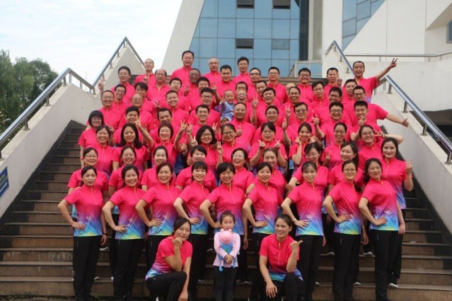 比赛完,其它学院的职工们对我们竖起了大拇指“你们计算机真厉害”“你们咋个又是一等奖呢”……为了这次比赛,工会委员们制定了周密的训练计划:每天早上十点,办公室的职工集中练习;每周二、四的中午全体人员集中练习,热心的教练一遍一遍地带领大家,一个动作一个动作地统一,还有针对性地对部分队员“一对一”辅导;所有队员们刚刚结束上午的教学,匆匆扒几口饭,牺牲了自己的午休时间,冒着酷暑赶来集合,一遍遍地练习,会做了就要做得更标准,大家相互提点,互相督促,工会委员们早早开始筹划,贾年老师像辛勤的小蜜蜂前前后后地忙碌着,卢华老师为了大家漂亮的服装真是操碎了心,刘忠明老师等为训练做好了后勤保障……我们的一等奖离不开学院的大力支持,离不开工会委员们的团结协作,离不开石红、李颖、何忠秀三位教练的悉心指导,更离不开队员们积极耐心地练习……在每一次的工会活动中,我们全院职工都体身力行、完美地诠释着责任心、集体荣誉感,这就是我们力量的源泉!