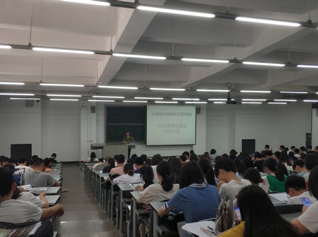 4月22日,计算机与软件工程学院在6B108,6B208教室召开2016级学生就业动员大会。院党委书记黄继红、党委副书记毕达平,2016级各专业辅导员、成都国信安信息产业基地有限公司等企业代表及2016级全体学生参加了本次大会。