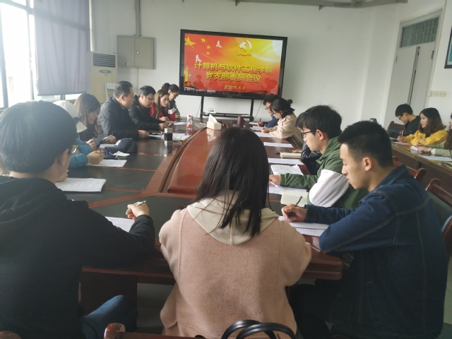 4月4日中午,计算机与软件工程学院在6A519召开党建工作部署会议。学院党委书记黄继红、党委副书记毕达平、各教工支部学生支部书记和支委参加本次会议。