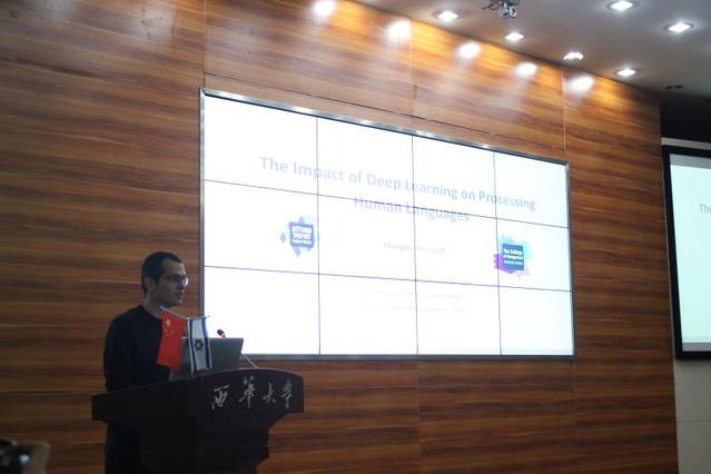 接着由Kfir Bar先生为同学们分享深度学习对人类语言处理的影响。Kfir Bar先生用生动形象的语言和浅显易懂的案列,给同学们讲解了深度学习与以往的语言处理方式的不同,从机器学习、训练以及学习过程三个技术方面直接道出了深度学习的三大优势,鼓励同学们多多关注深度学习。