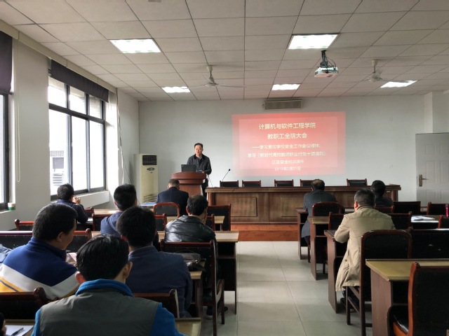 3月21日下午,计算机与软件工程学院在6A520会议室召开了全院教职工大会,部署整治形式主义、官僚主义工作,组织学习《新时代高校教师职业行为十项准则》、安全知识课件等,并安排安全工作等近期工作。会议由学院党委书记黄继红主持。