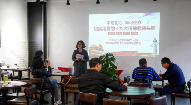 自十九大胜利召开以来,计算机与软件工程学院掀起高涨的学习热潮。11月16日下午,计算机与软工工程学院教工一支部全体党员在学生创新创业中心开展十九大精神的专题党课学习。党课由支部书记魏冬梅主讲。