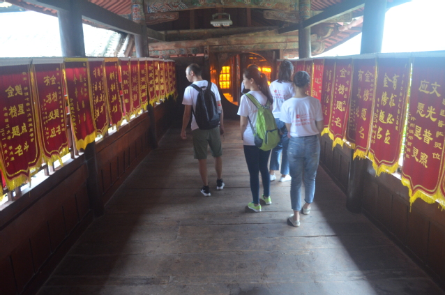 初到七曲山时,志愿者们首先被半山腰处耸立着的一道崭新、巍峨的崇文门牌坊吸引,纷纷驻足留影。接着在登上一长段阶梯之后,终于见到了大庙的正门“帝乡”,在讲解员的带领下,志愿者们一起参观了天尊殿、桂香殿、百尺楼、关羽庙等地。其中,在参观百尺楼的时候,志愿者们看到了十分壮观的场面,在楼道两旁摆放了许多来自全国各地高考学子祈福许愿的榜文。在以前,魁星主管文章兴衰,主宰着读书人的前途命运,因此读书人十分看重魁星手中之笔。古有云:“魁星点斗时,金榜题名日”。志愿者们慕其名,纷纷进行朝拜。