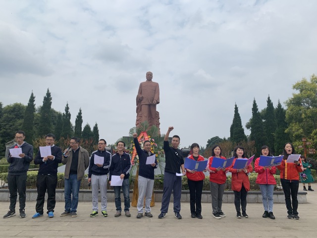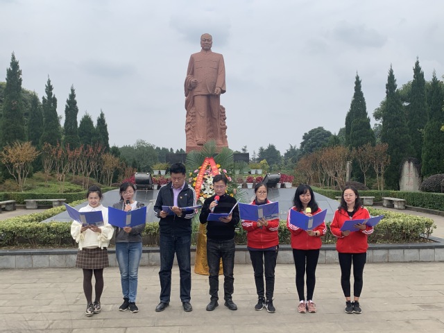 “没有共产党就没有新中国,共产党,辛劳为民族,共产党他一心救中国,他指给了人民解放的道路……”,全体师生合唱《没有共产党就没有新中国》,雄壮豪迈的歌曲表达了全体师生对革命先烈的纪念和对祖国的热爱。随后,各教工党支部与学生党总支进行了爱国主义诗歌朗诵,教工一、五支部的《感谢有你》,请教工二、四支部的《梅岭三章》,教工三支部的《我和我的祖国》,学生党总支的《颂陈毅元帅》等,深深颂扬了对陈毅元帅一生坚持战斗,坚持工作,努力为人民服务的革命精神。最后,大家参观了陈毅故居、故居文物陈列馆和陈氏宗祠,深切缅怀革命前辈在艰难岁月和艰苦条件下创造丰功伟绩的革命精神,感受红色教育的洗礼。