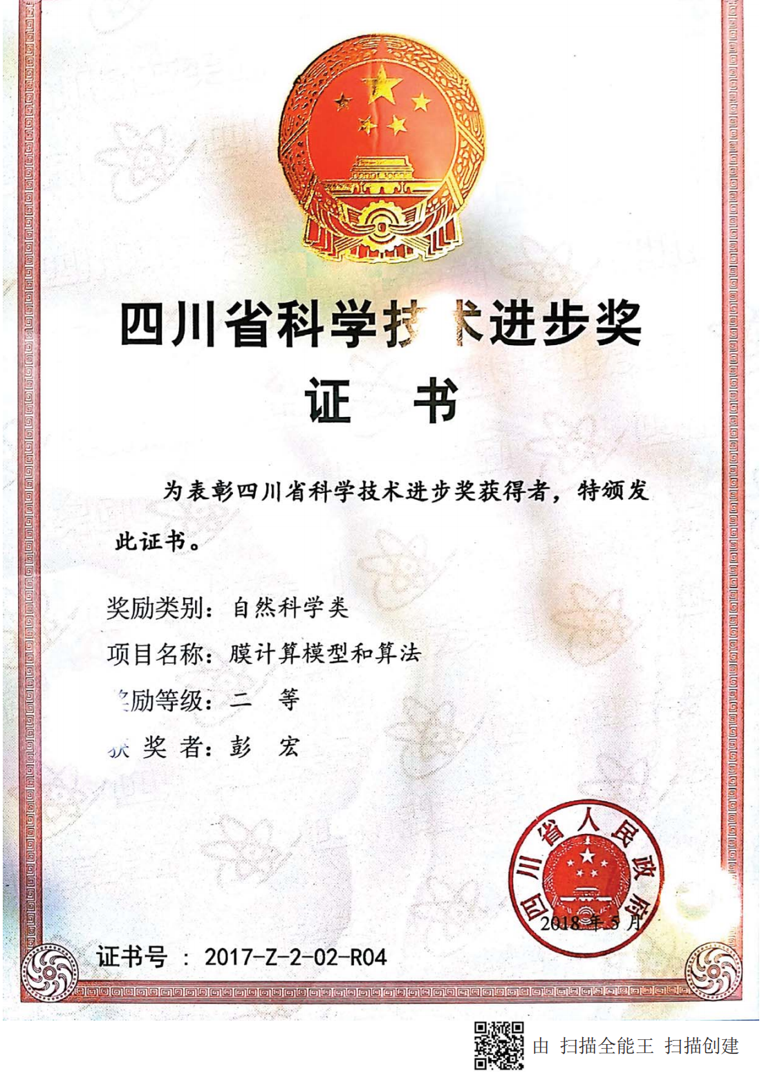 四川省自然科学奖二等奖