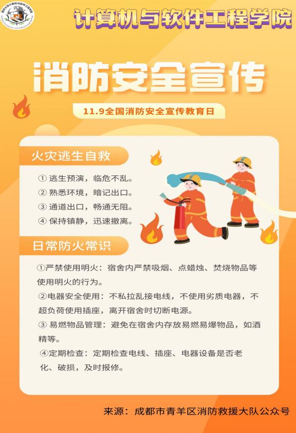 为深入贯彻国家关于加强消防安全宣传教育的决策部署,落实bw西汉姆联“关于开展2024年11·9消防安全宣传月活动的通知”要求,增强师生的消防安全意识和自防自救能力,在第33个全国消防日来临之际,计算机与软件工程学院开展一系列丰富多彩的消防安全教育活动。