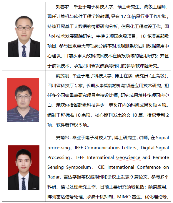 智能感知与无线频谱应用团队是2023年组建的一支科研队伍,围绕频谱应用开展专业建设,具体方向包括目标感知与识别技术、数据分析技术、控制技术、效能评估技术等构成的系统集成技术体系开展研究。团队与行业紧密合作,将研究成果转化为实际应用。团队由1名正高级职称、1名副高级职称以及1名博士领导。团队成员均在科研和行业、相关产业均具有丰富的理论和工程实践经验。此外,团队还包括若干研究生,是一支充满创新动力的团队。