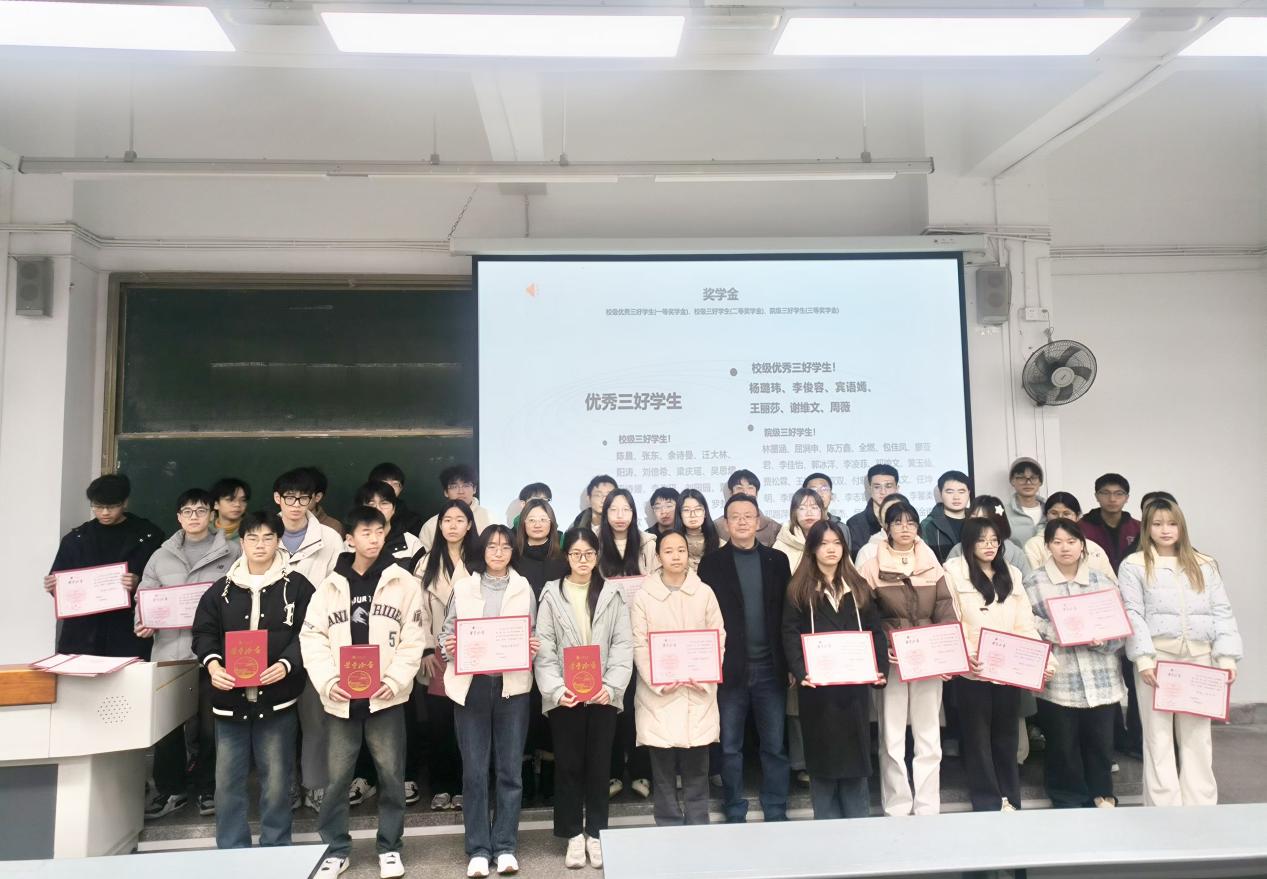 2024年12月3日中午12点20分,计算机与软件工程学院在6B107隆重举行了年级大会,对在本次评奖评优、表现突出的优秀学生和班级干部进行了表彰。此次大会由谢望同学主持,赖霞老师出席颁奖,2022级计算机科学与技术专业和信安专业的同学共同参与。