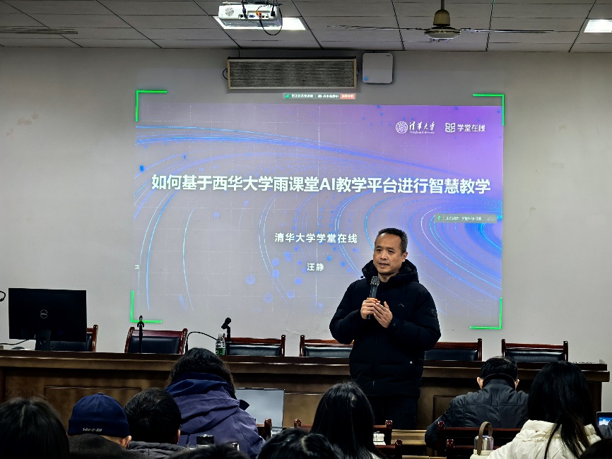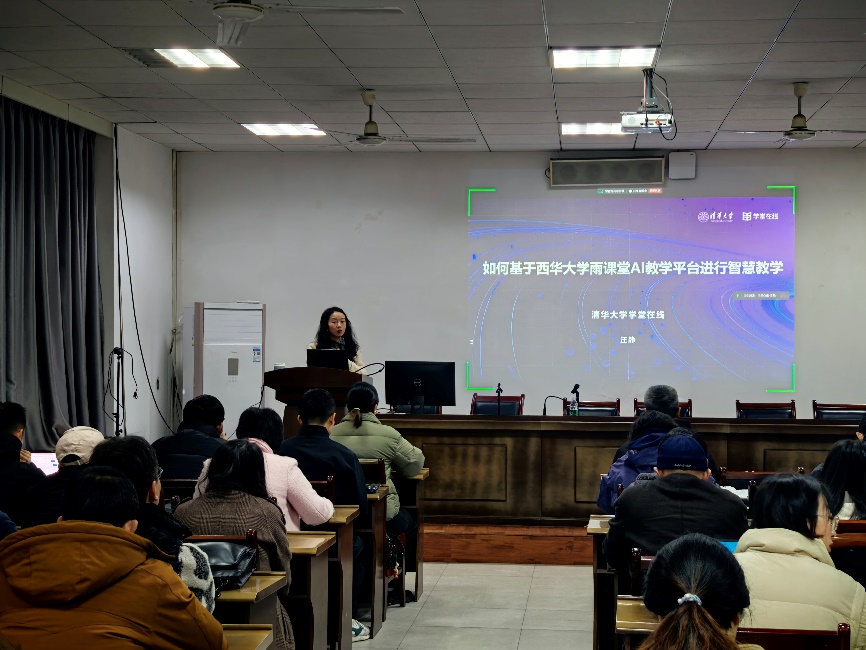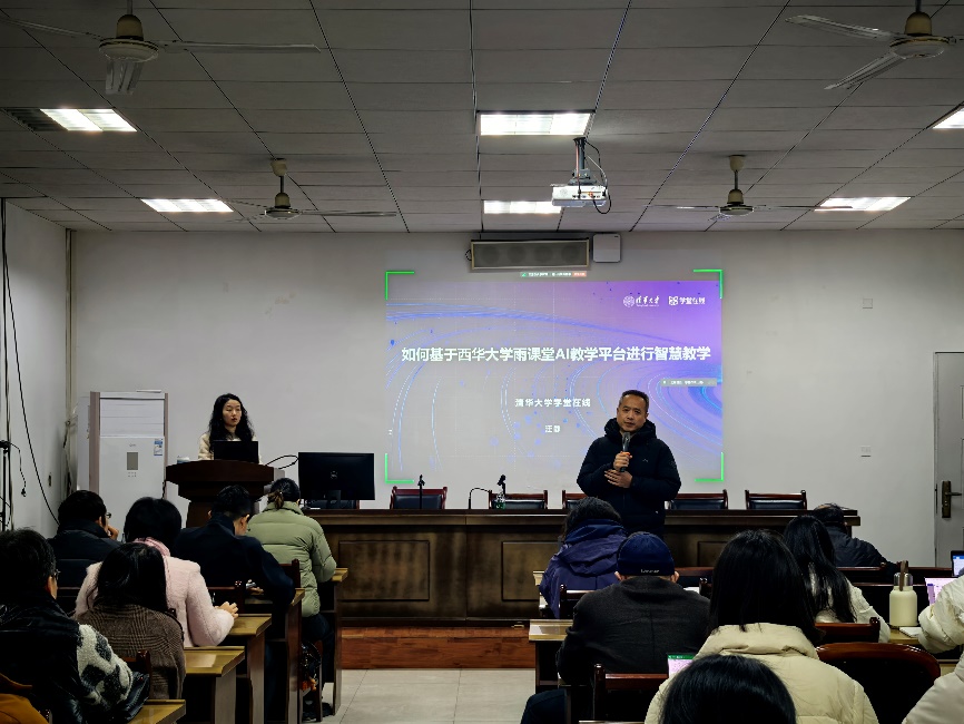 为满足广大教师对于高质量“人工智能赋能教育教学”相关培训课程与实践案例的迫切需求,助力我院深度开展人工智能时代的教学改革创新,学院于2024年12月5日下午两点,郫都校区和宜宾校区分别在6A520、2A309会议室,同时举行“基于新版雨课堂的AI教学实践”主题教研活动。