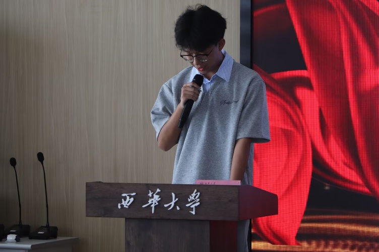 颁奖结束后,计科2404班兰翔皓和信安2301班罗恒鑫同学作为优秀学生代表上台发言。他们分享了参赛心得和学习经验,表达了对学院和老师的感谢,表示将继续砥砺前行,勇攀高峰。