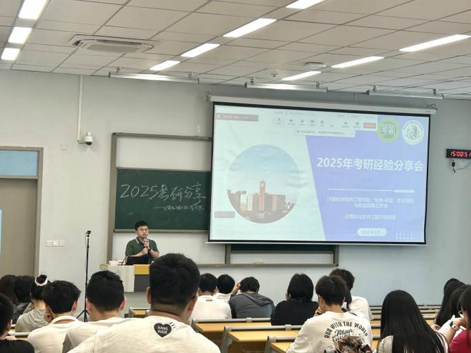 为助力莘莘学子筑牢考研信心之基,更好地了解考研动态、明确择业方向,扎实推进学院学风建设迈向新高度,计算机与软件工程学院于5月21日,在宜宾校区2B201开展了一场考研经验分享会。本次分享会由学院“未来·青蓝”职业规划与就业指导工作室和学院团委承办,线下线上同步进行,主要针对2026届考生,邀请了七位2025年成功上岸的学长学姐围绕目标选择、复习规划、心态调整、调剂技巧等方面分享实战经验,现场反响热烈。