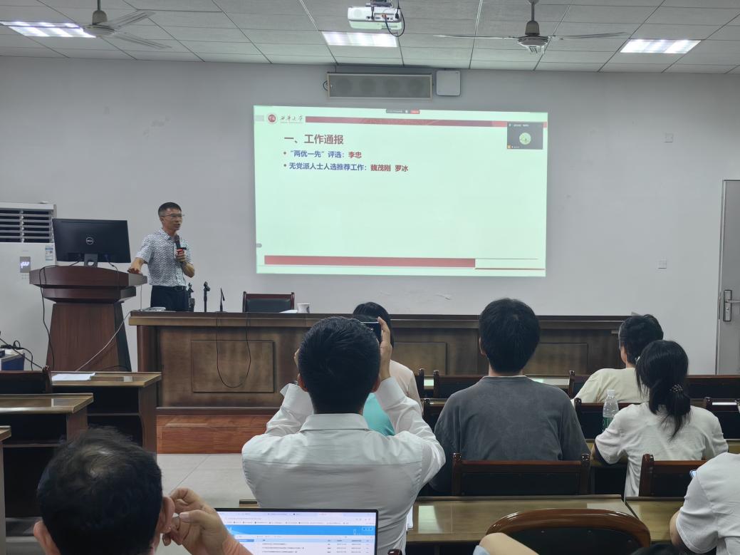 首先,杨志松书记传达了近期学校深入贯彻中央八项规定学习教育工作精神及部署,并强调各支部做好学习教育相关工作。同时,通报学院近期党建工作开展情况,并对下一步工作做出明确安排部署。