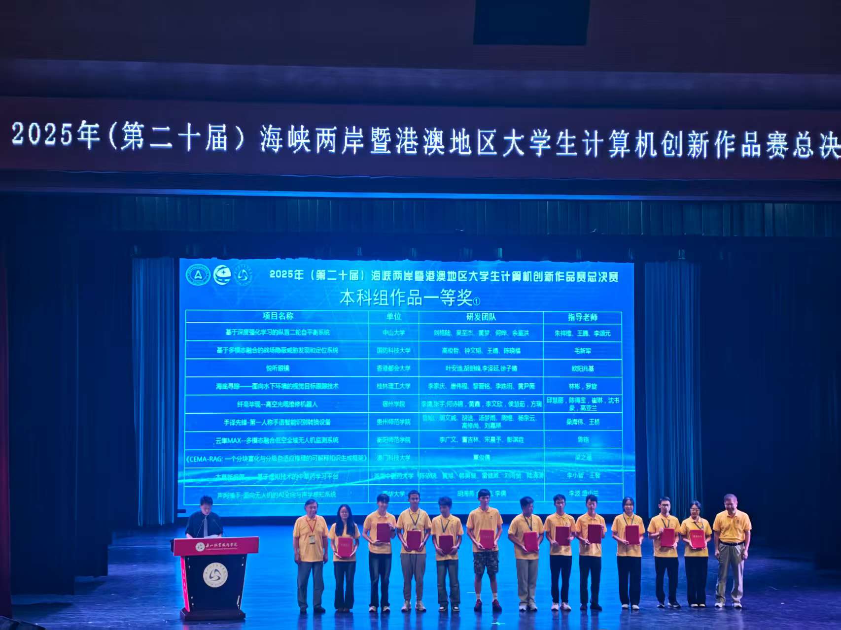 2025年7月13-15日,第二十届海峡两岸暨港澳地区大学生计算机创新作品赛总决赛在四川乐山举办,本次总决赛由全国高等学校计算机教育研究会主办,乐山职业技术学院承办,大赛初赛覆盖全国27个省、市及港澳台地区,500余所高校参与,参赛队伍总数达2202支,其中本科组1648支,高职组554支。经过严格选拔,共有195项优秀创新作品脱颖而出,晋级总决赛(本科组118项,高职组77项),参加总决赛师生共计500余人,充分展现了赛事广泛的影响力和计算机教育事业的蓬勃发展活力。比赛评委专家团队由各省高校、港澳地区及行业专家51人组成,从作品的选题、技术性、创新性、开发难度、实用价值及完善程度、演示答辩效果六个方面的指标进行评选。