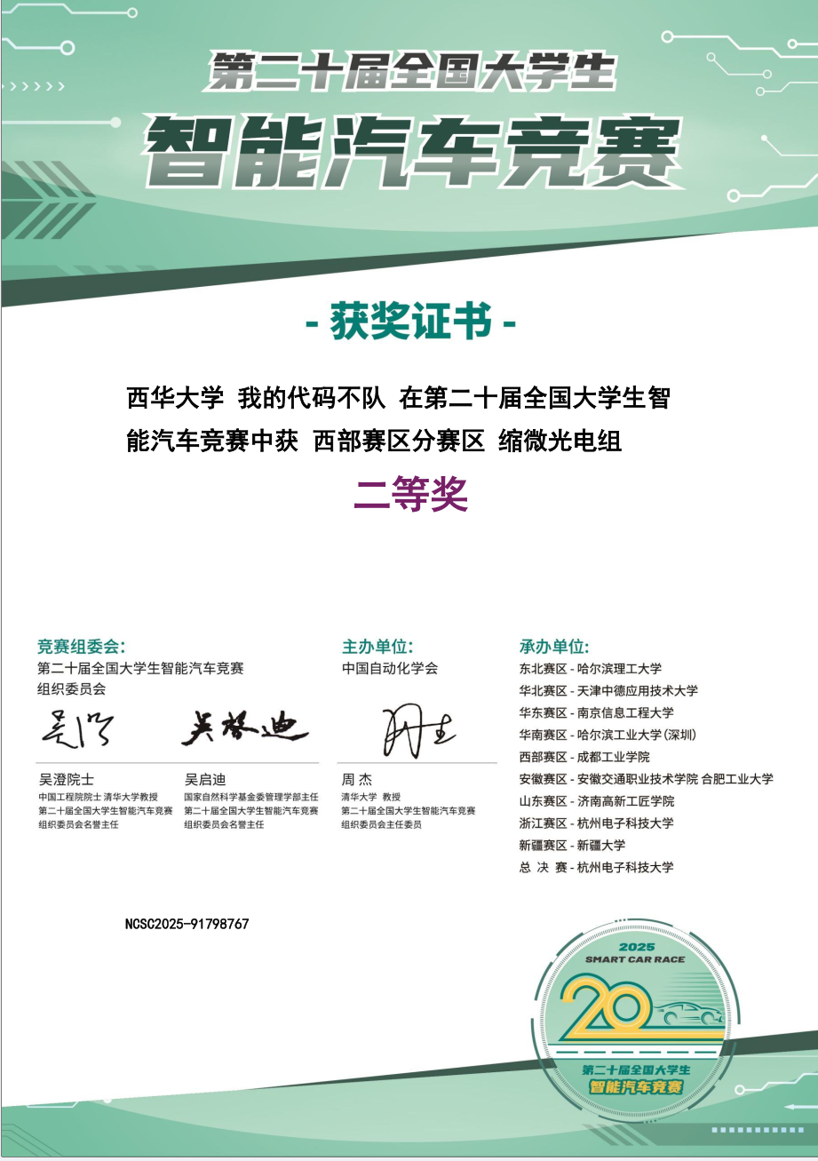 在此次比赛中,bw西汉姆联计算机与软件工程学院AIoT实验室首次组队参赛,荣获西部赛区"缩微光电组"二等奖,实现了学院在该项高水平赛事中的零的突破。由王雨润、邓鹏、李岱鸿三位同学组成的参赛队,在李月卉、周望等教师的悉心指导下,从零开始,独立完成了智能车电路搭建、控制算法开发与系统集成等全流程工作,展现了出色的工程实践能力和创新精神。