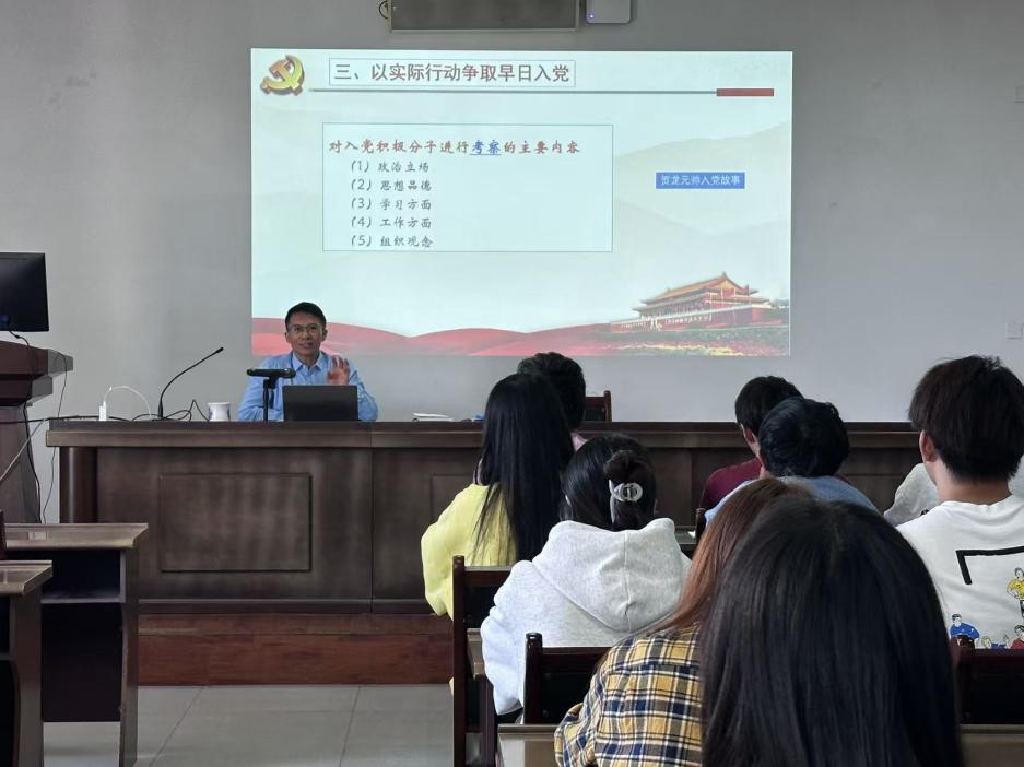 课堂伊始,杨书记结合自身党务工作经验与青年成长特点,围绕 “端正入党动机”“明确党员标准”“以实际行动争取早日入党”三大核心内容,展开层层递进的讲解。杨书记通过分析大学生入党动机的常见类型,清晰界定了 “对党真挚的爱、对共产主义的坚定信念、为人民服务的人生价值观”等正确动机的核心内涵。